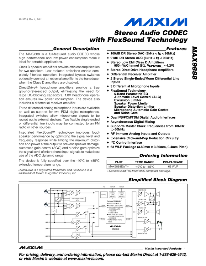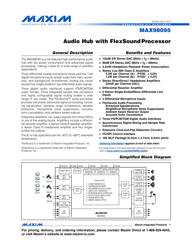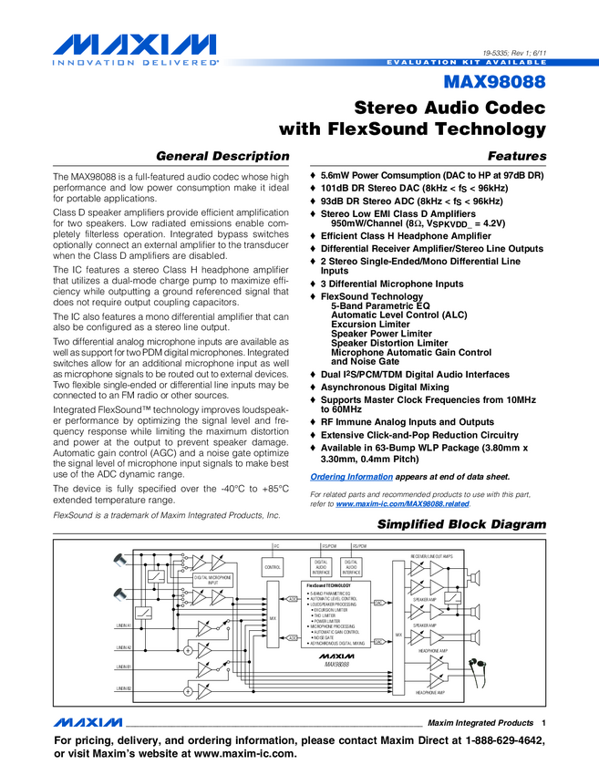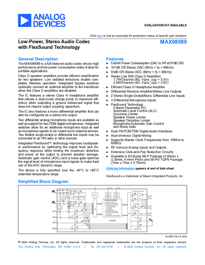 MAX98089 Stereo Audio Codec with FlexSoundD Technology