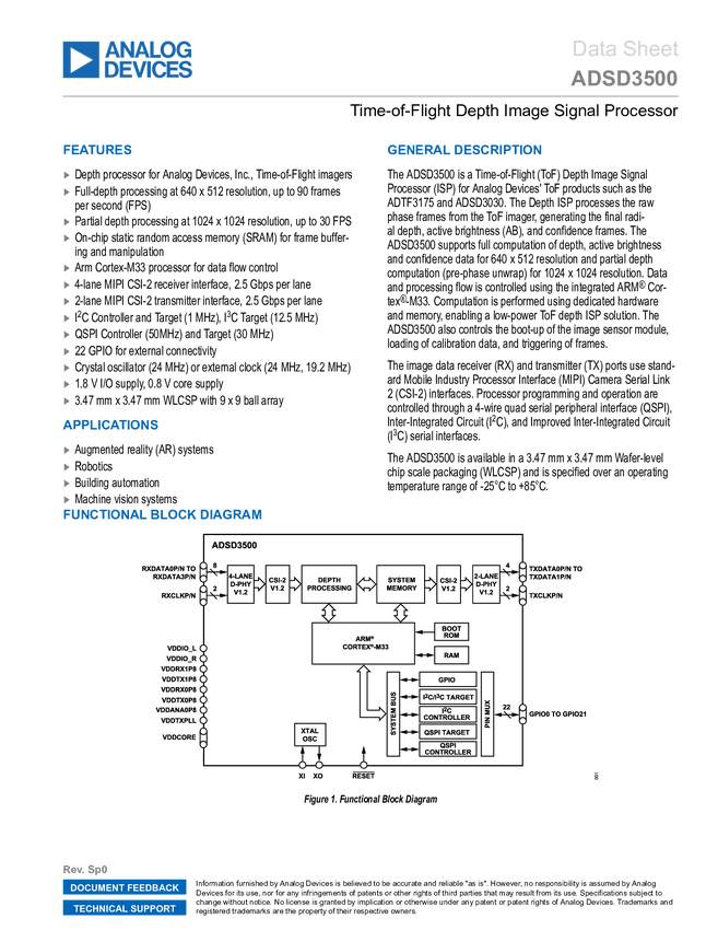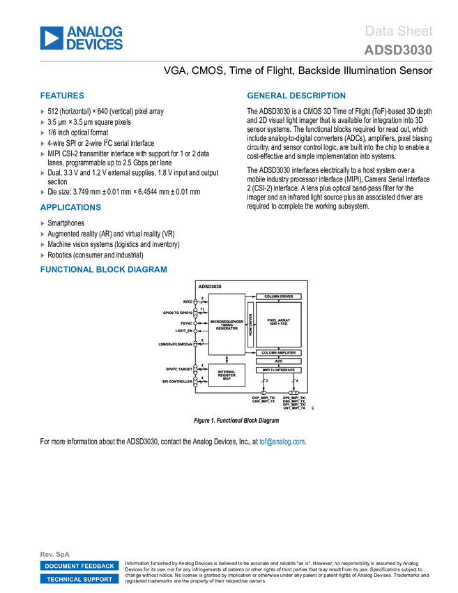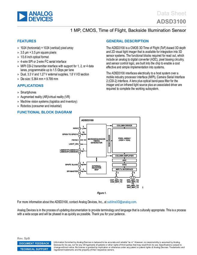 1 MP, CMOS, Time of Flight, Backside Illumination Sensor