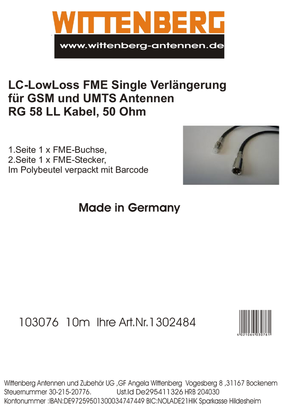 Wittenberg Antennen 10 m Kabel antenowy Wtyczka FME, Gniazdo FME 103076