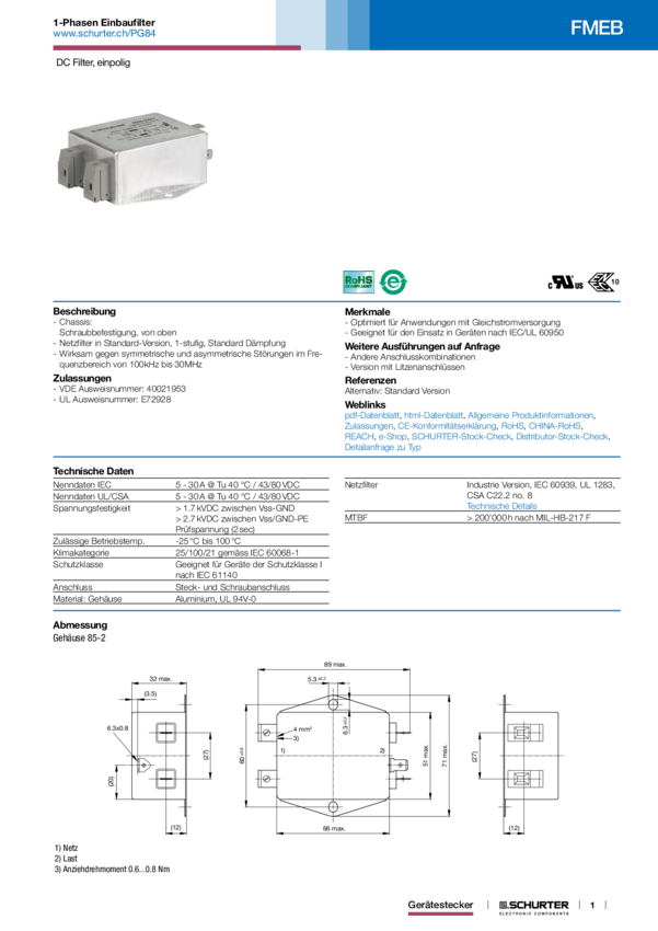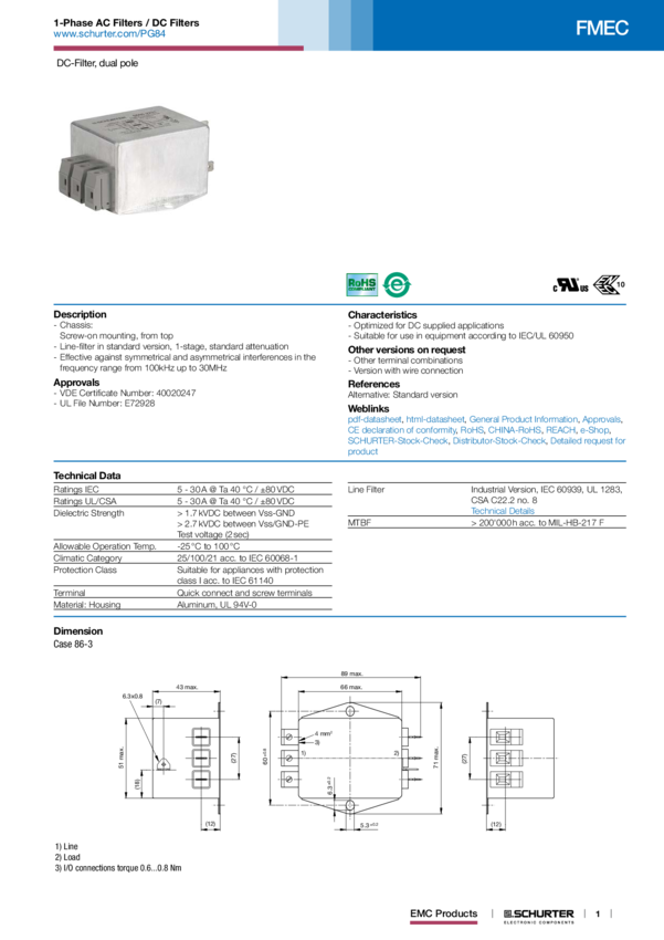 FMEC Filter 2PH 1ST 10A ±80VDC