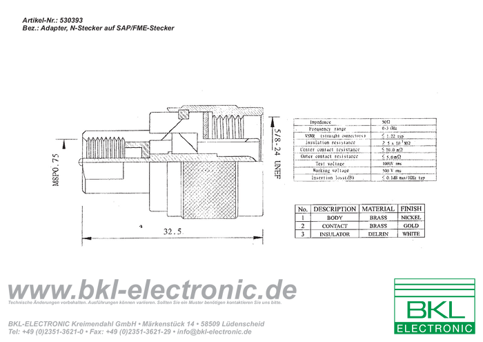 Adapter FME BKL Electronic 0412014 złącze męskie FME - złącze męskie N 1 szt.