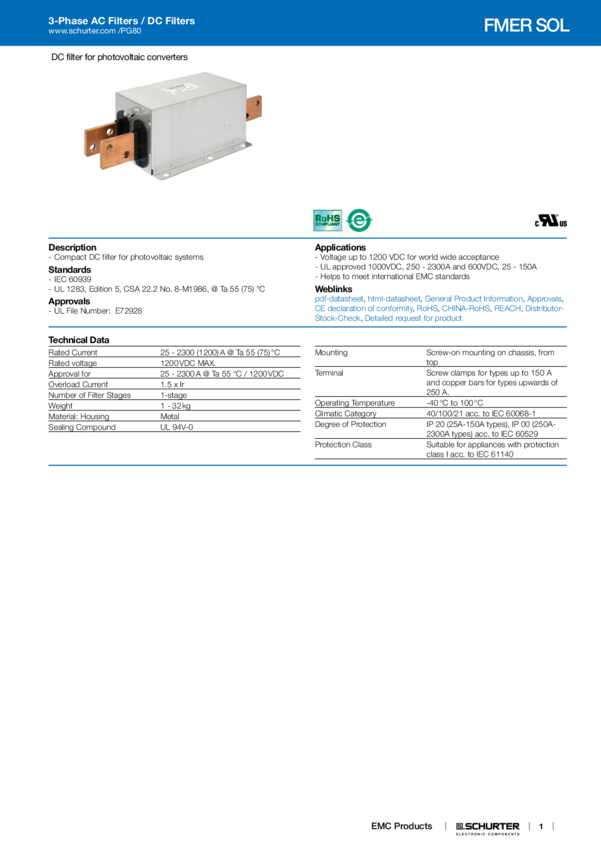 FMER SOL FILTER DC 1ST M5 1500A 1200VDC