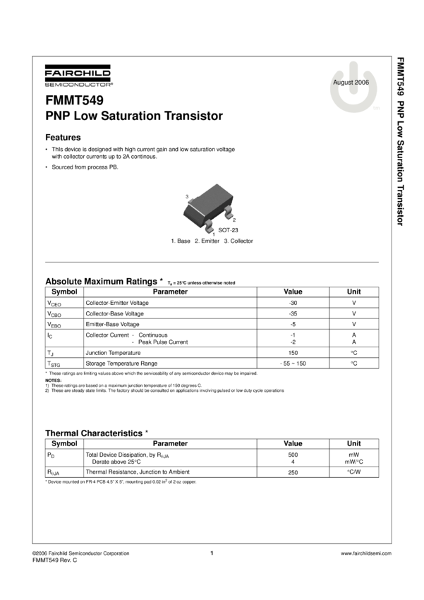 PNP Low Saturation Transistor