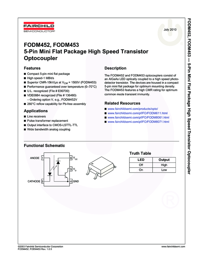 5-Pin MFP High Speed Transistor Output Optocoupler