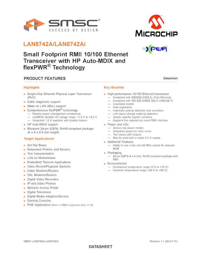 LAN8742A/LAN8742Ai Small Footprint RMII 10/100 Ethernet Transceiver with HP Aut (12/04/2013)