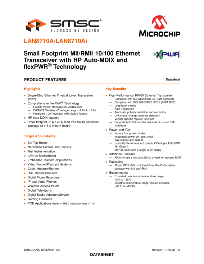 LAN8710A/LAN8710Ai Small Footprint MII/RMII 10/100 Ethernet Transceiver with HP (08/23/2012)