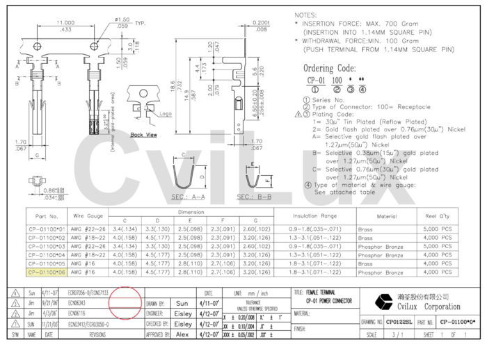 Konektor na przewód AWG22-18, fosforo-brąz, cynowany, do złacza AMP280590, , [!]