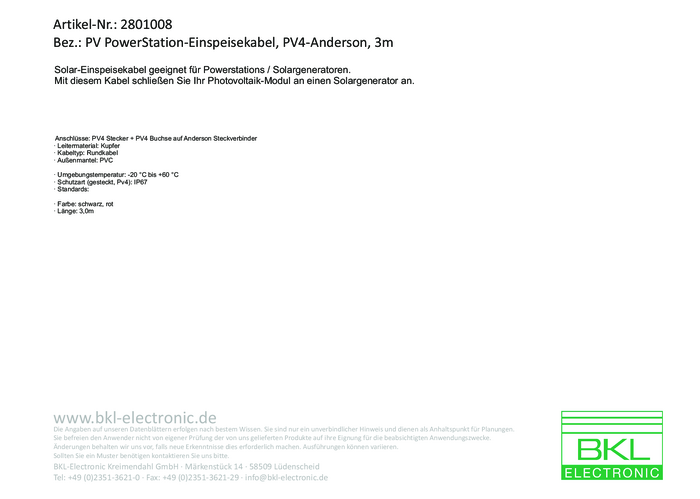 Kabel zasilający do elektrowni fotowoltaicznej BKL Electronic 2801008 Długość kabla 3 m
