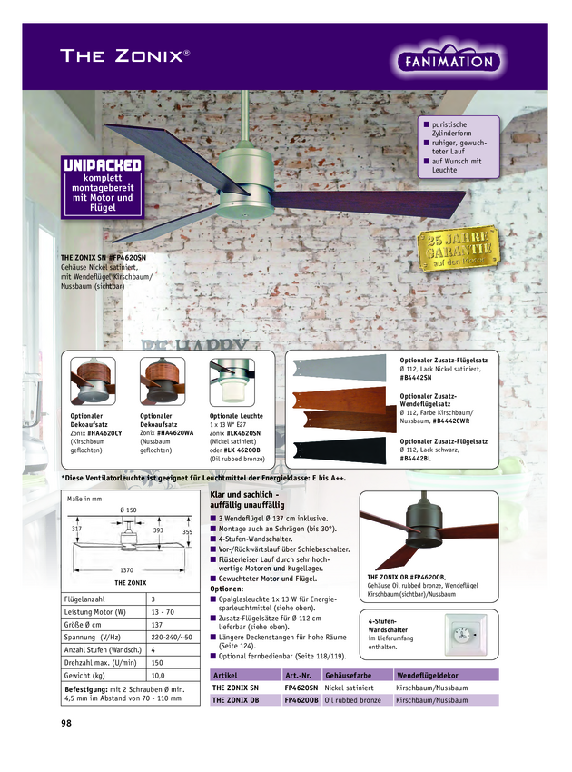 Fanimation Zonix OB Wentylator sufitowy 70 W (Ø x W) 132 cm x 393 mm oil rubbed bronze przełącznik ścienny