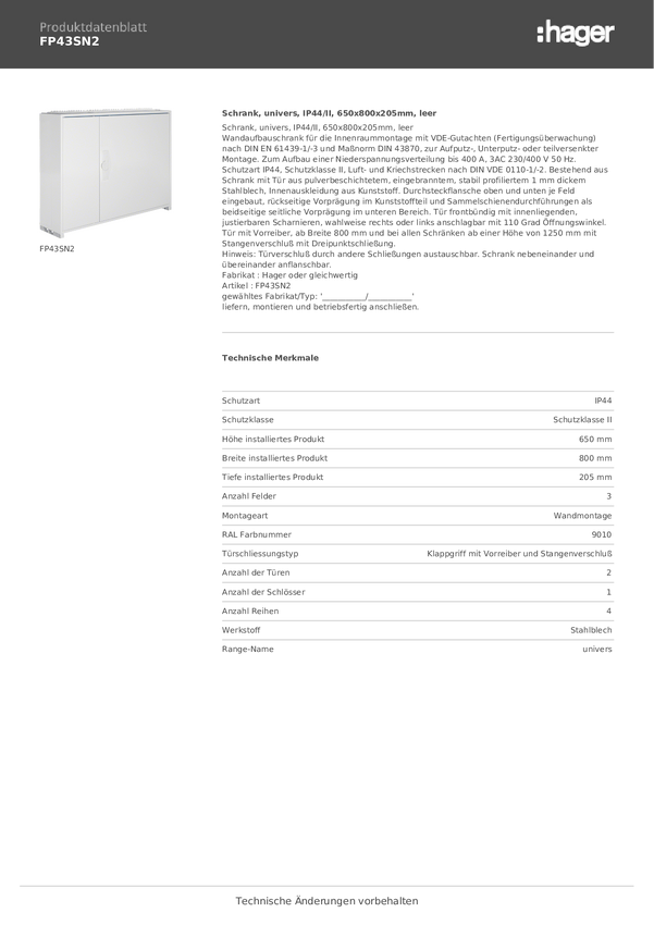 Hager Szafka 800 x 650 x 205 stal czysty biały (ral 9010) 1 szt.