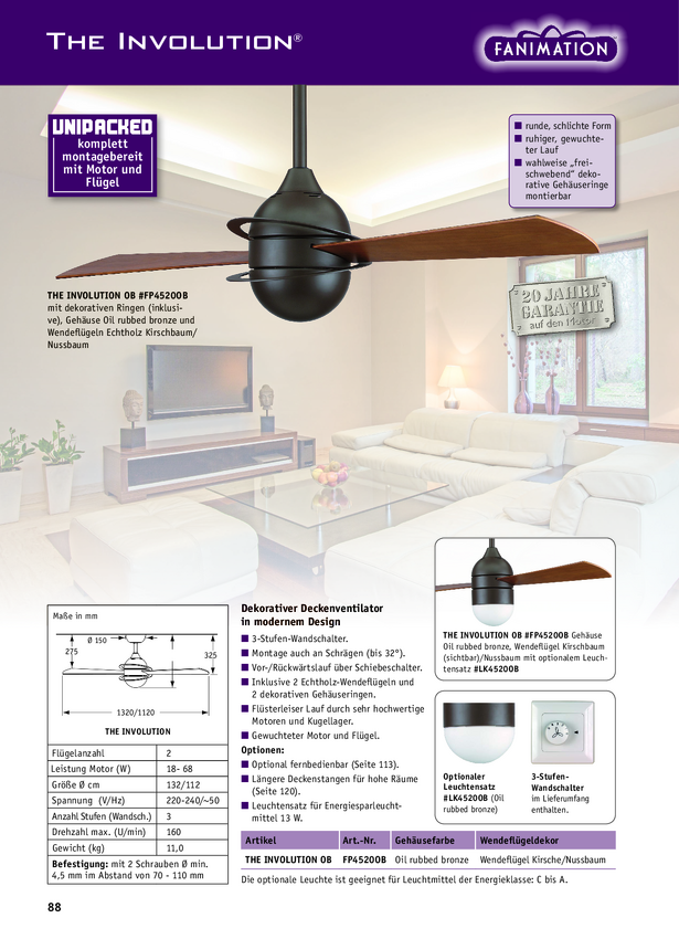 Fanimation Involution OB Wentylator sufitowy (Ø x W) 132 cm x 432 mm Kolor łopatek: drewno wiśniowe, drzewo orzechowe Ko