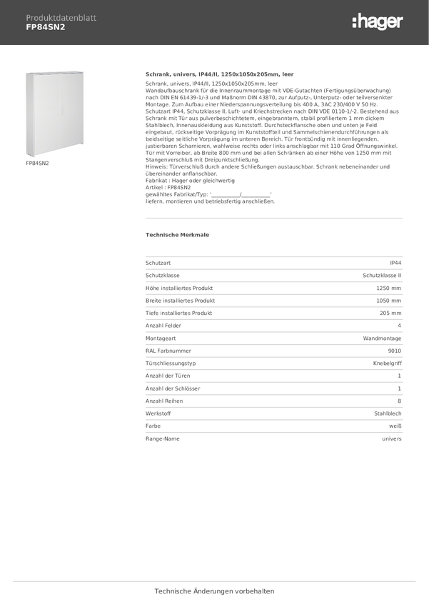 Przetwornik i szafka pomiarowa Hager FP82W4N, 550 mm x 1250 mm x 205 mm, 1 szt.