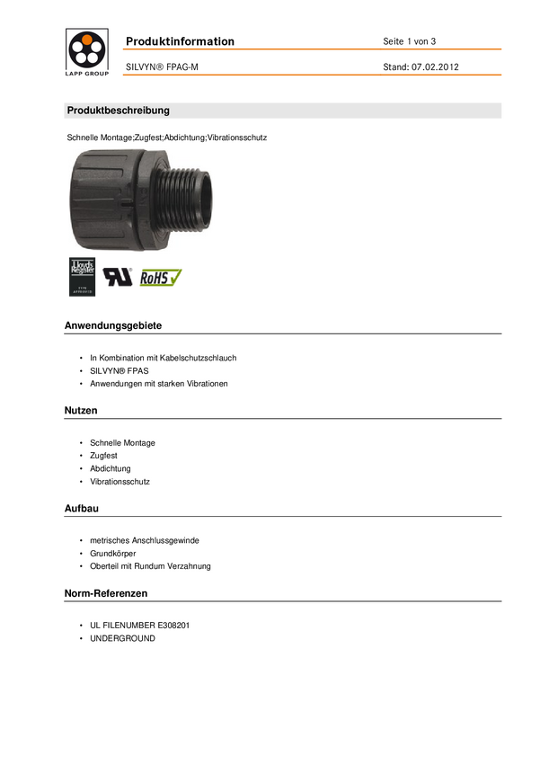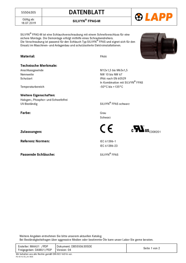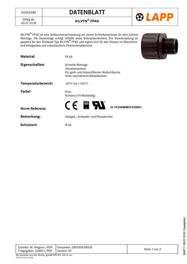LAPP 55506395 SILVYN® FPAG M50x1,5/2 BK Złącze śrubowe do węża czarny M50 prosty 2 szt.