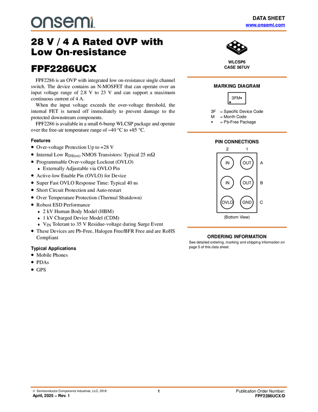 Current Limit Load Switch with OVP and TRCB, 28 V, 5 A