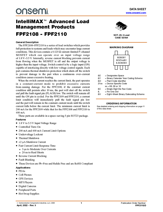 22 V/5.5 A Capable OTP/OVP/IDTRCB Power Switch