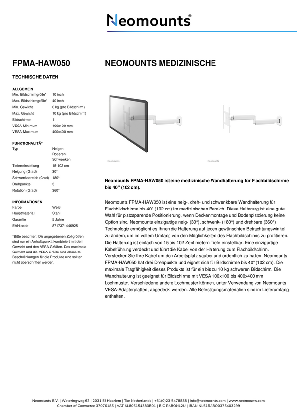 Neomounts firmy Newstar do montażu na ścianie w medycynie roboczej