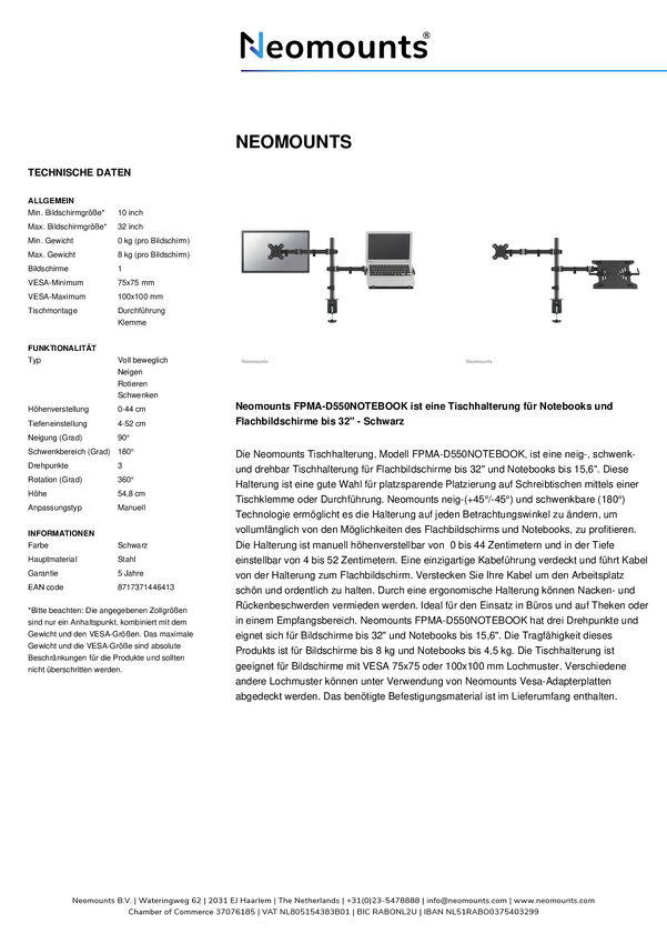 Neomounts by Newstar płaski ekran i uchwyt na biurko do notebooka