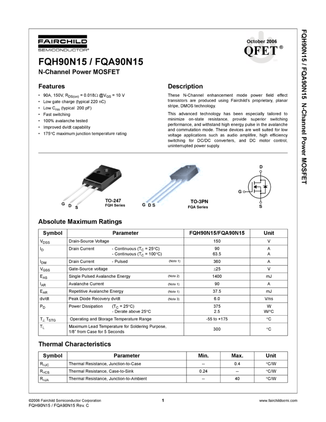 N-Channel QFET® MOSFET 150V, 90A, 18mΩ