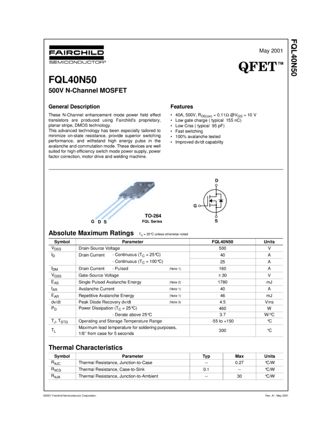 N-Channel QFET® MOSFET 500V, 40A, 110mΩ