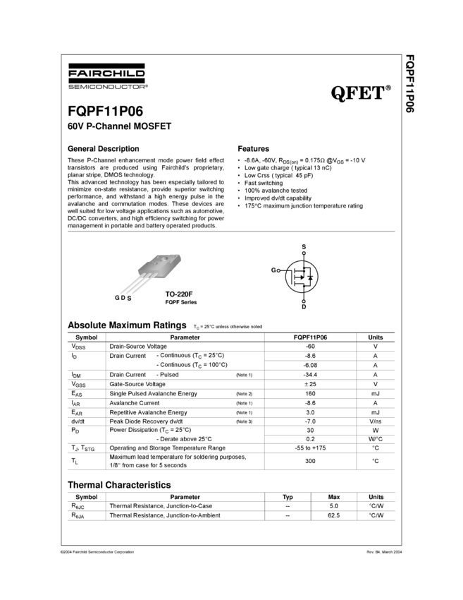 P-Channel QFET® MOSFET -60V, -8.6A, 175mΩ