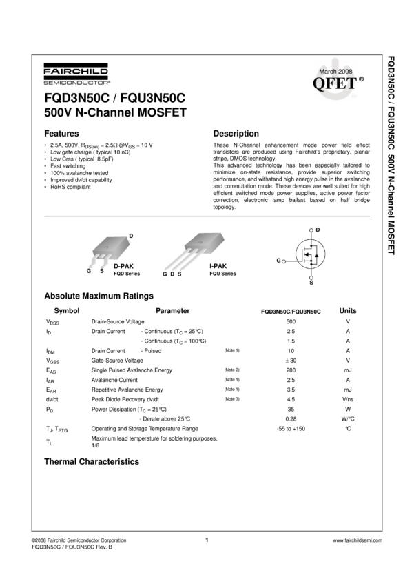 N-Channel QFET® MOSFET 250V, 3A, 1.75Ω