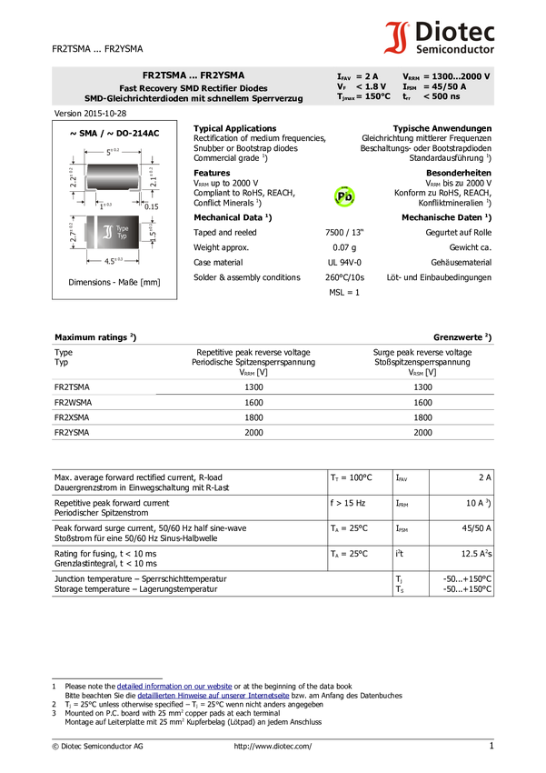 Dioda prostownicza Diotec FR2YSMA N/A N/A