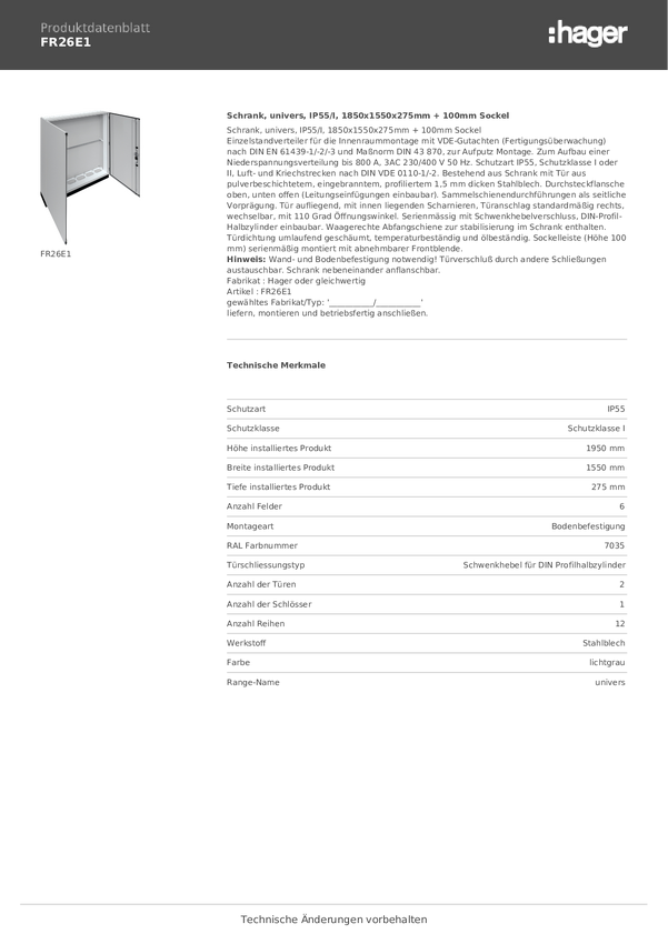 Hager Szafka 1550 x 1950 x 275 stal szaro-biały (ral 7035) 1 szt.