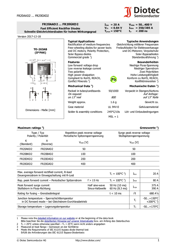 Dioda prostownicza Diotec FR20DAD2 N/A N/A