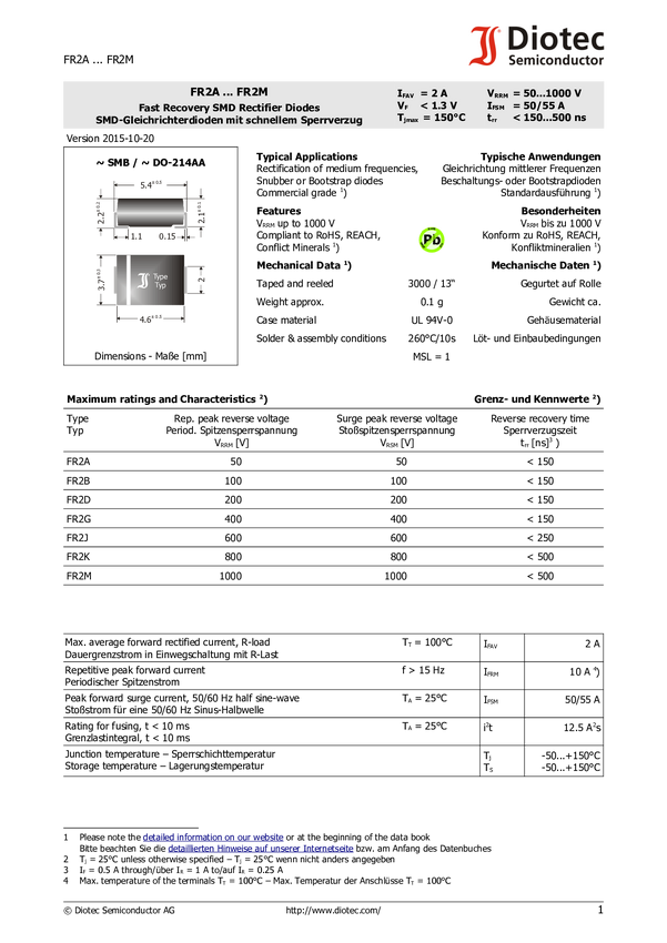 Dioda FR2M DO-214AA/SMB Diotec FR2M
