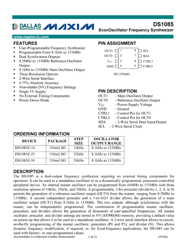 DS1088, DS1088L Fixed-Frequency EconOscillator™