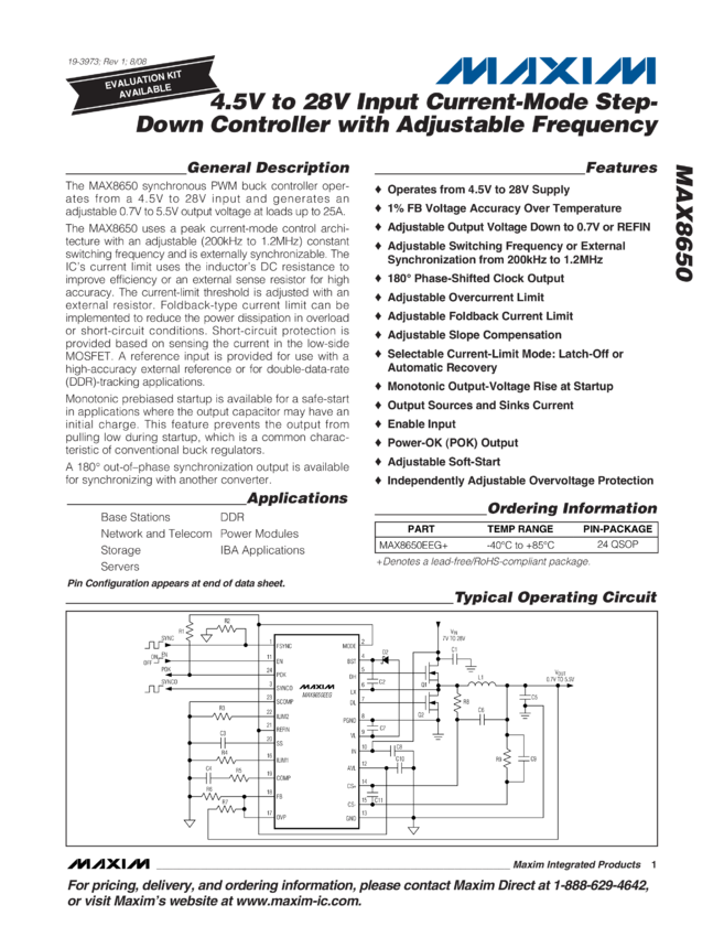 MAX8650 4.5V to 28V Input Current-Mode Step-Down Controller with Adjustable Frequency