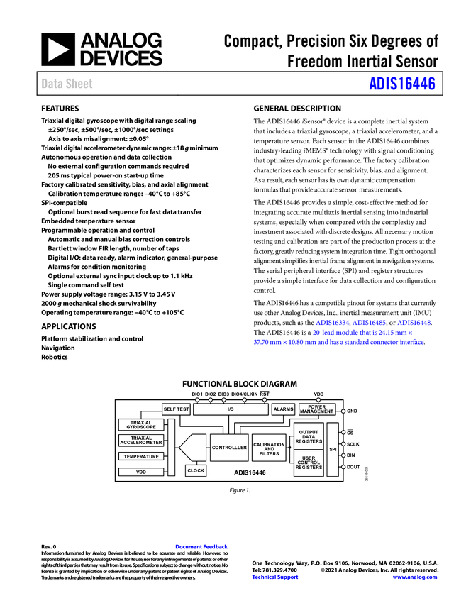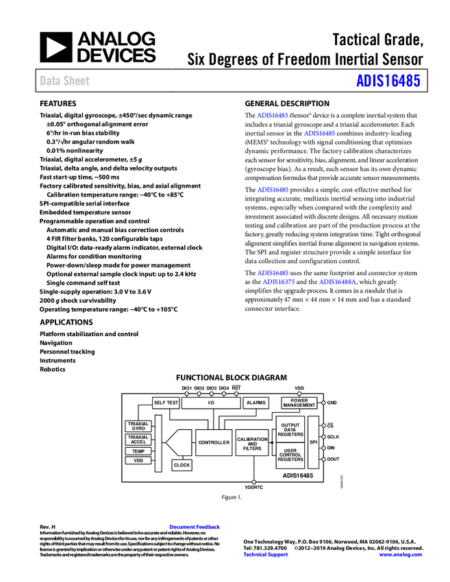 Autonomous Grade, Six Degrees of Freedom Inertial Sensor