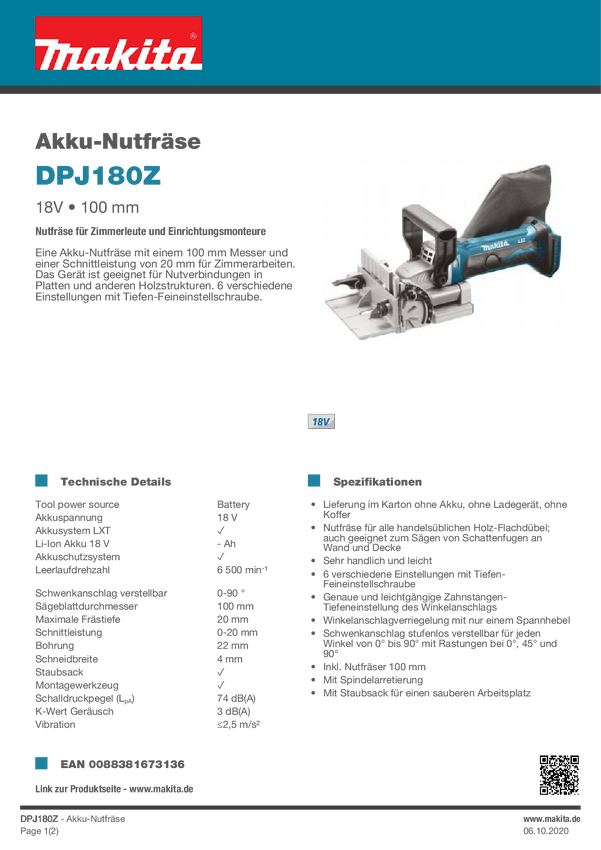 Makita Frezarka krawędziowa akumulatorowa DPJ180Z S_0380_5511962 bez akumulatora