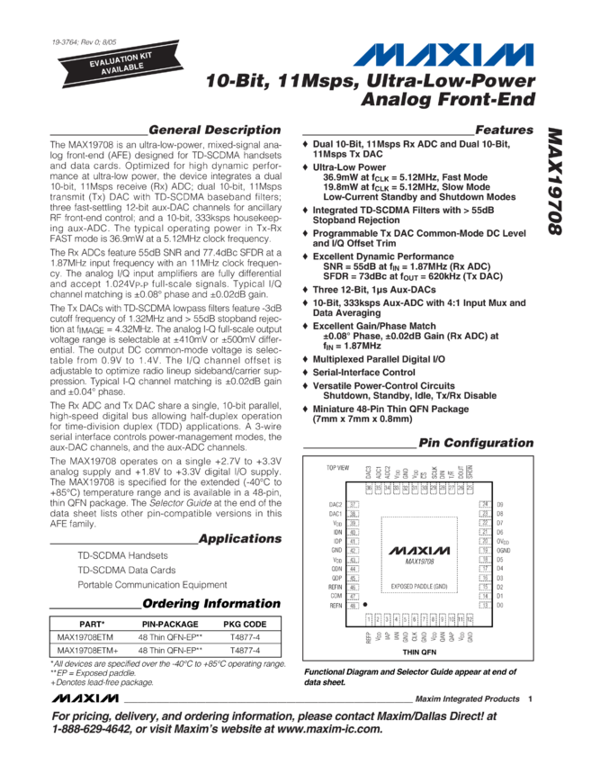 MAX19705 10-bit, 7.5Msps, Ultra-Low-Power Analog Front-End