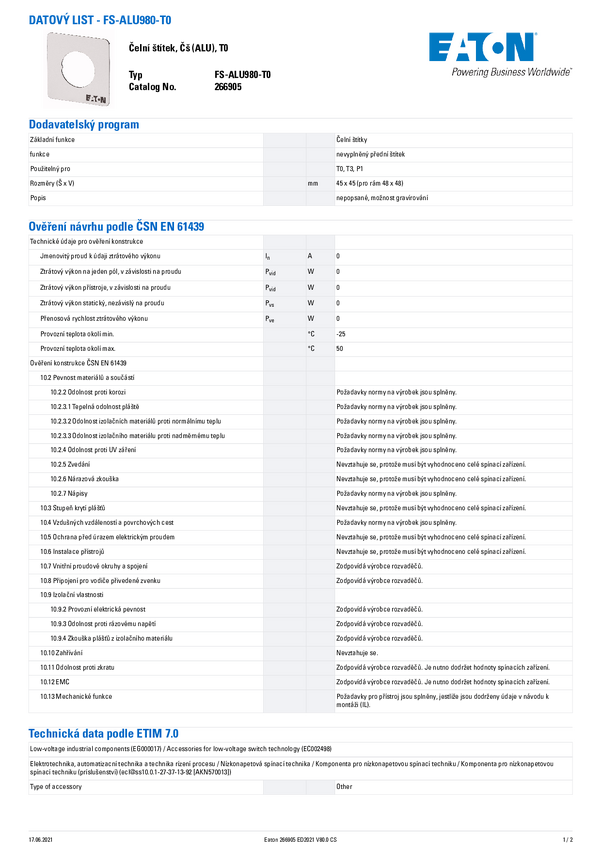 Tabliczka frontowa Eaton FS980-TM-E 1 szt.