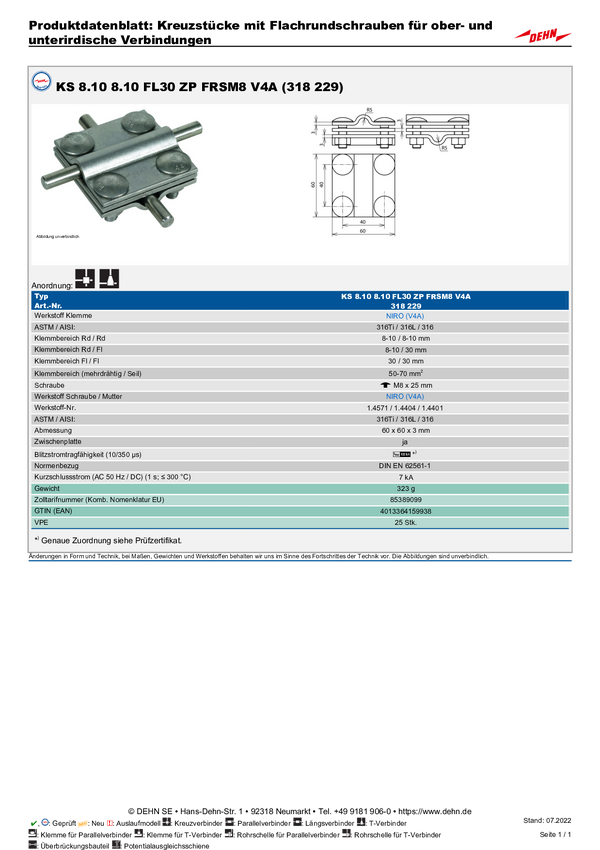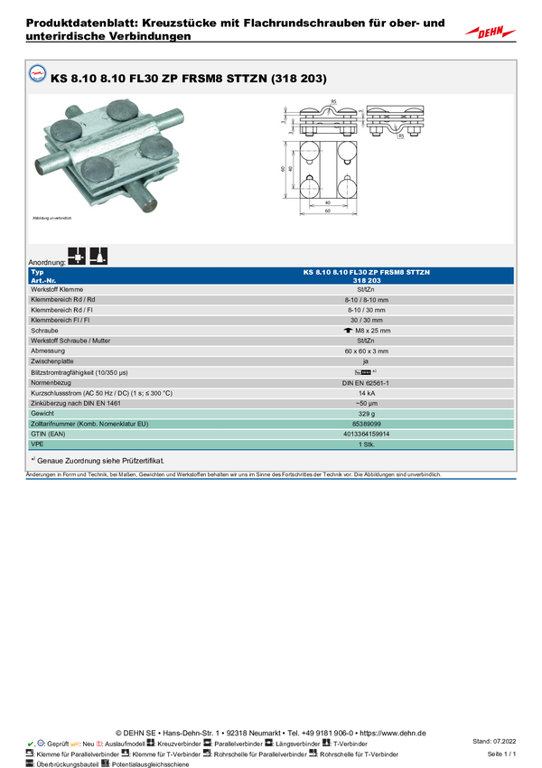DEHN 318203 KS 8.10 8.10 FL30 ZP FRSM8 STTZN Krzyżak