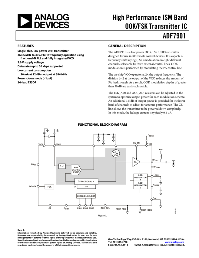 ADF7901: High Performance ISM Band ASK/FSK Transmitter IC