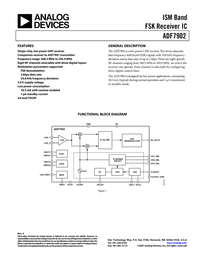 ADF7012: Multichannel ISM Band FSK/GFSK/OOK/GOOK/ASK Transmitter