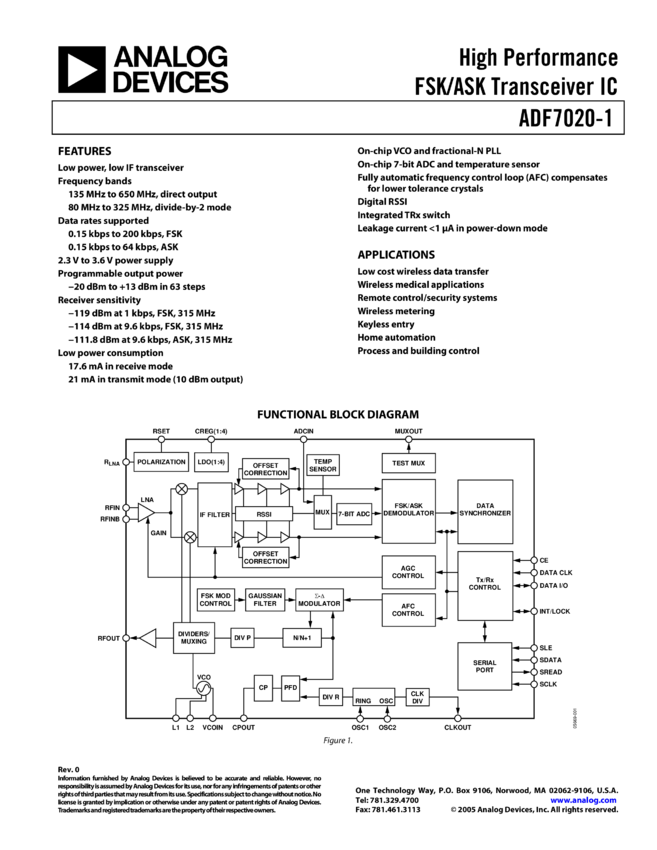 ADF7020-1: High Performance, ISM Band, FSK/ASK Transceiver IC