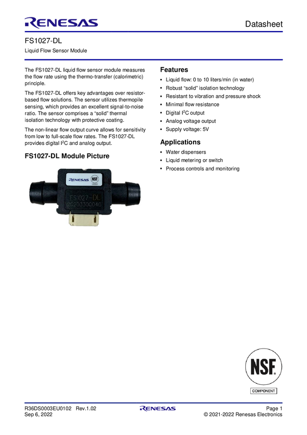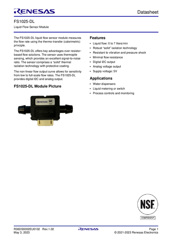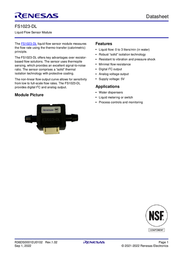 Liquid Flow Sensor Module, 0 to 10 SLPM