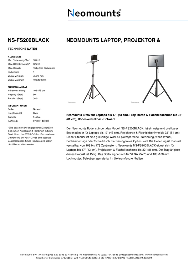 Podstawka pod notebooka Neomounts NS-FS200BLACK regulacja wysokości, składany
