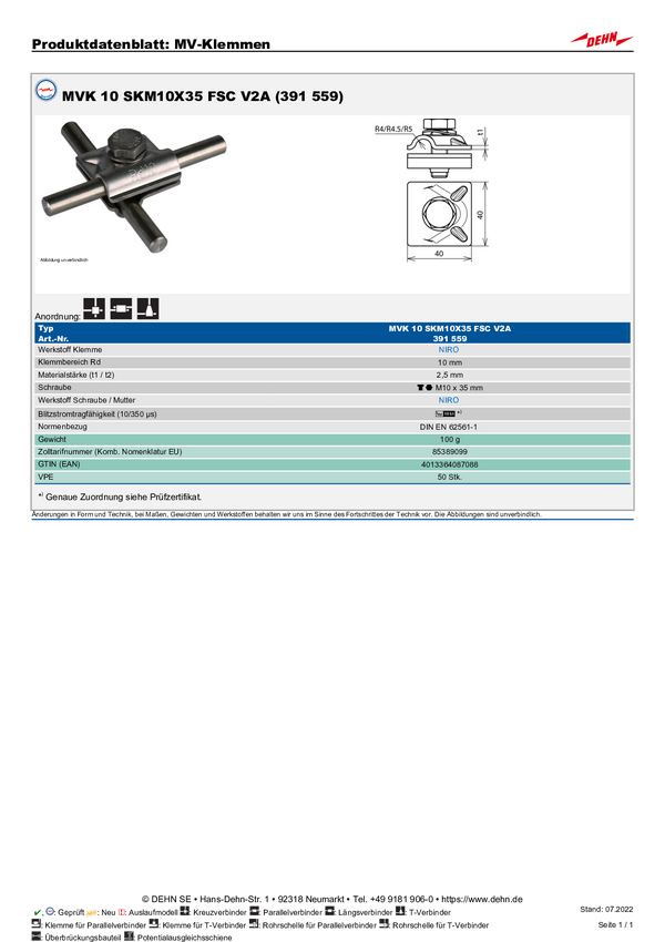 DEHN 391559 MVK 10 SKM10X35 FSC V2A Zacisk MV 1 szt.