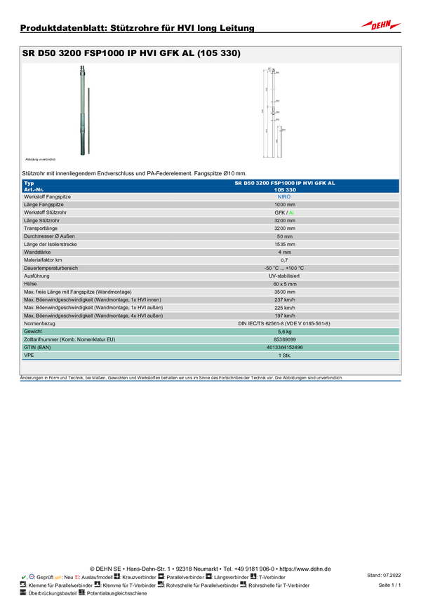 DEHN 105330 SR D50 3200 FSP1000 IP HVI GFK AL Rura nośna 1 szt.