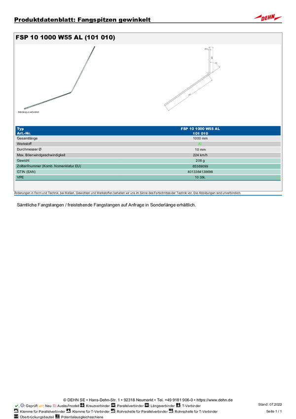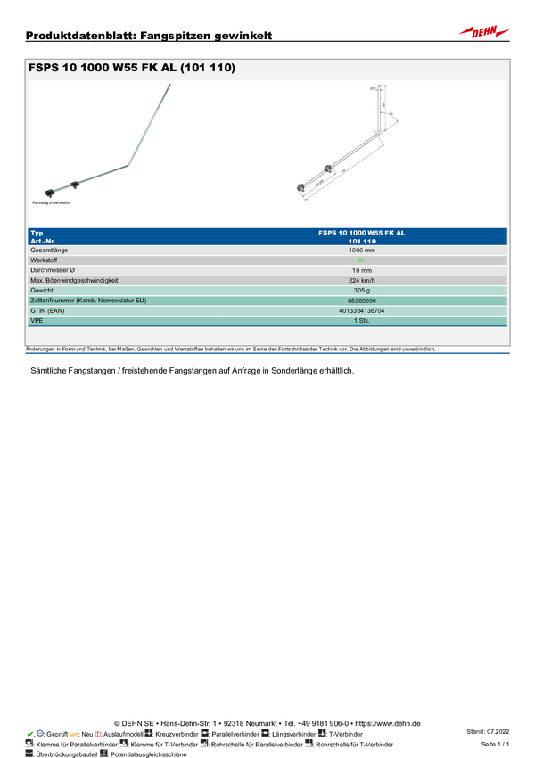 DEHN 101010 FSP 10 1000 W55 AL Wskazówka dotycząca łapania 1 szt.