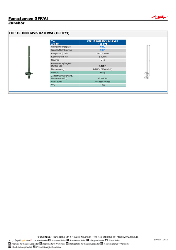 DEHN 105071 FSP 10 1000 MVK 8.10 V2A Wskazówka dotycząca łapania 1 szt.