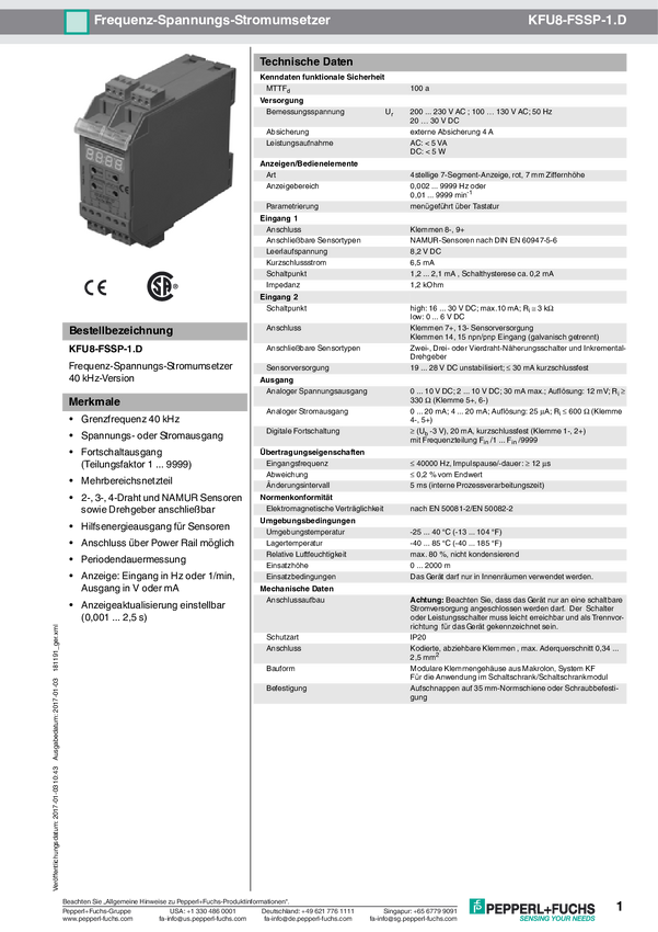Pepperl+Fuchs KFU8-FSSP-1.D 181191 Konwerter prądu-częstotliwości-napięcia 1 szt.