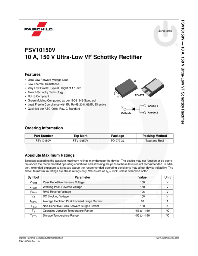 10 A, 150 V Ultra-Low VF Schottky Rectifier