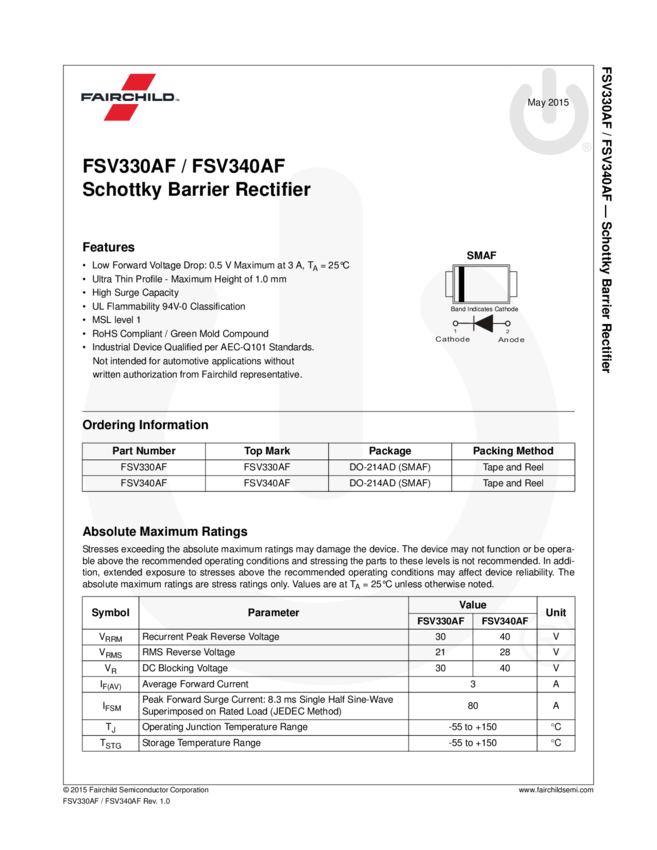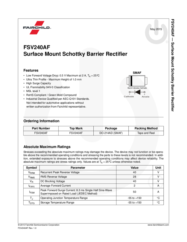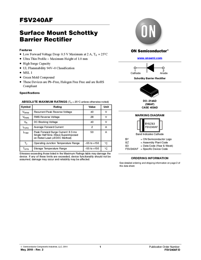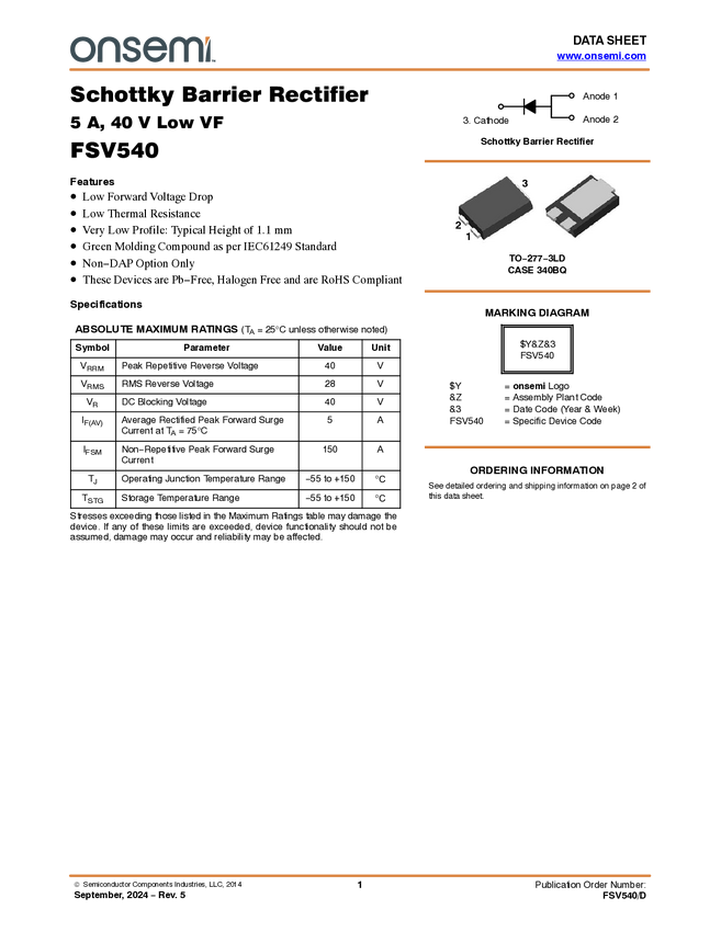 5 A, 40 V Low VF Schottky Barrier Rectifier