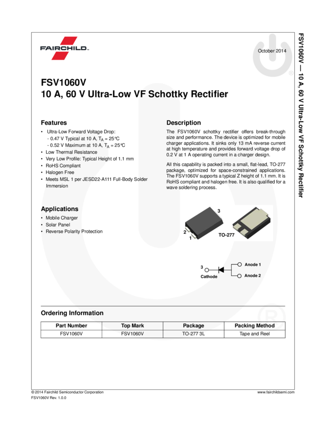 10 A, 60 V Ultra-Low VF Schottky Rectifier