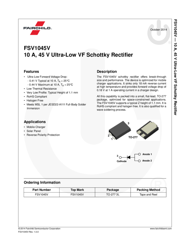 10 A, 45 V Ultra-Low VF Schottky Rectifier